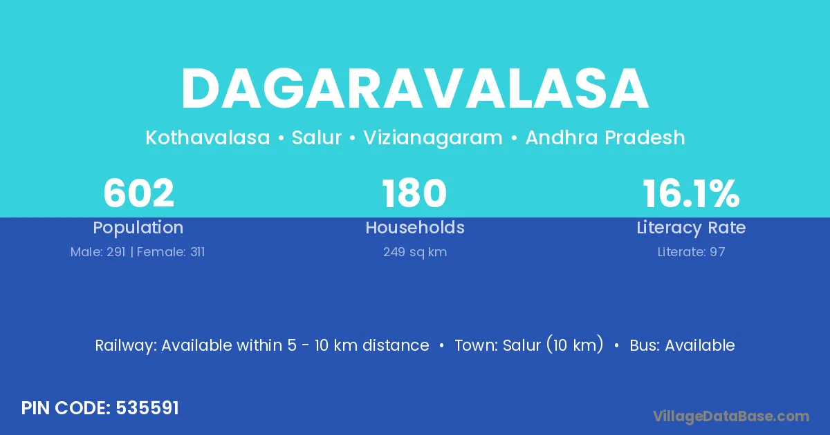 Dagaravalasa village has a total population of 602 people, of which 291 are males and 311 are females.