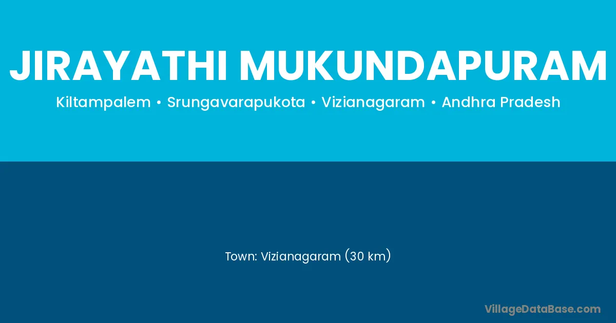Vizianagaram (30 km) is the nearest town to Jirayathi Mukundapuram village for major economic activities and is located approximately 30 km away.