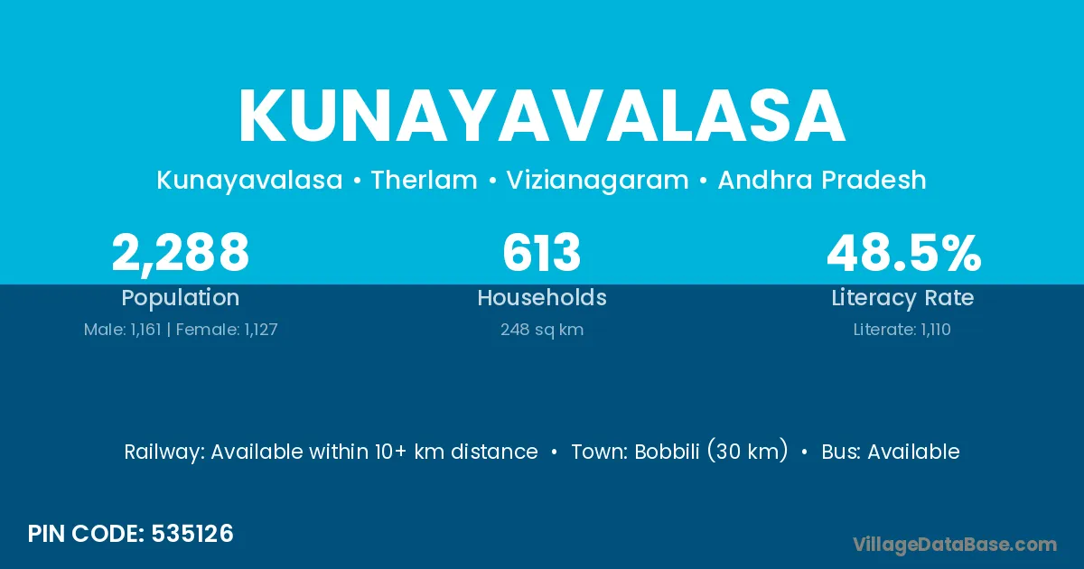 There are approximately 613 households in Kunayavalasa village.