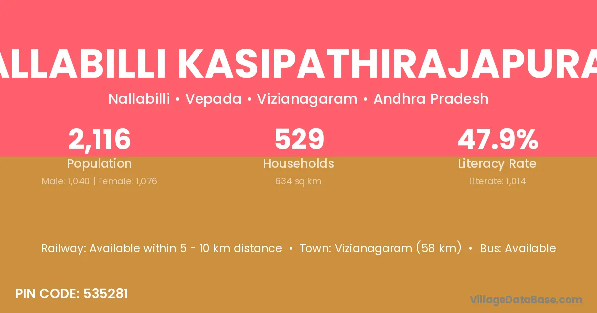 According to Census 2011 information, the village code of Nallabilli Kasipathirajapuram village is 535281.