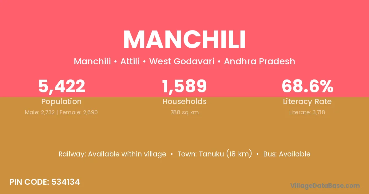 Manchili village has a total population of 5,422 people, of which 2,732 are males and 2,690 are females.