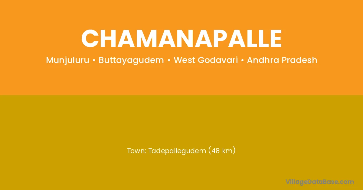 Tadepallegudem (48 km) is the nearest town to Chamanapalle village for major economic activities and is located approximately 48 km away.