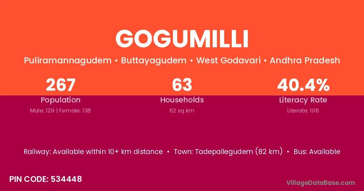 According to Census 2011 information, the village code of Gogumilli village is 534448.