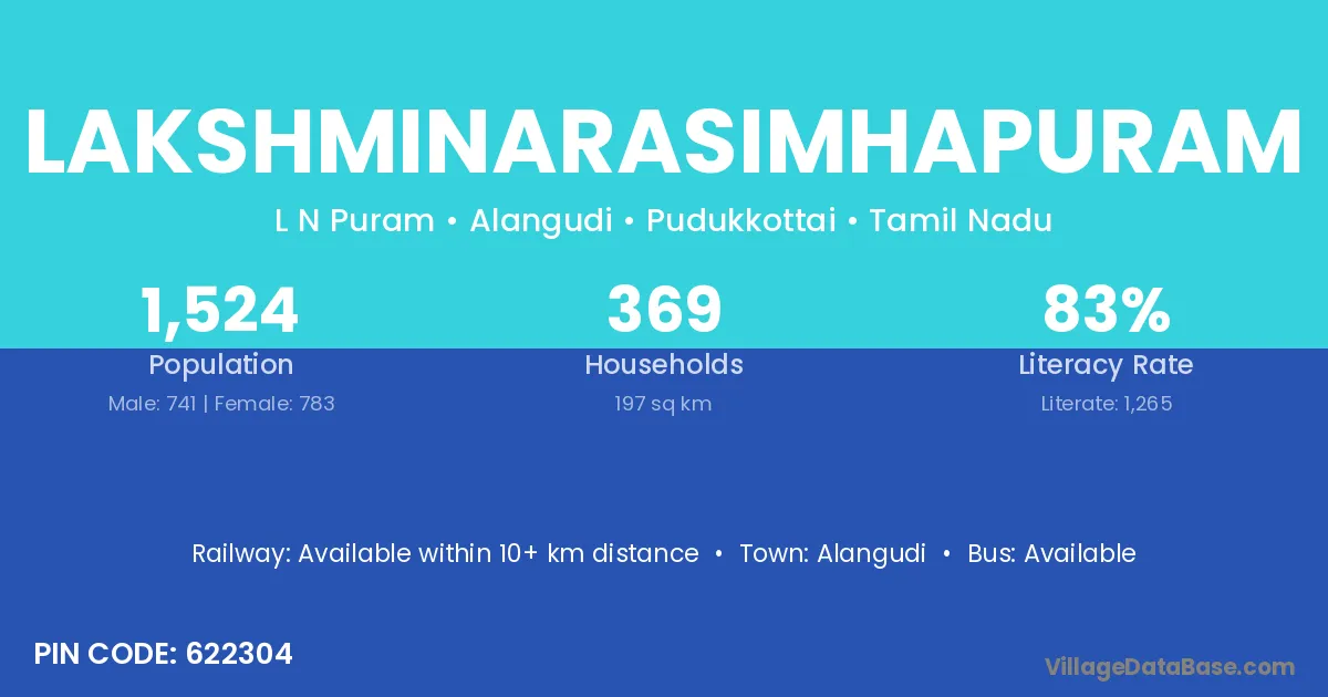 The literacy rate of Lakshminarasimhapuram village is 75.46%. Male literacy stands at 74.39% and female literacy at 76.54%.