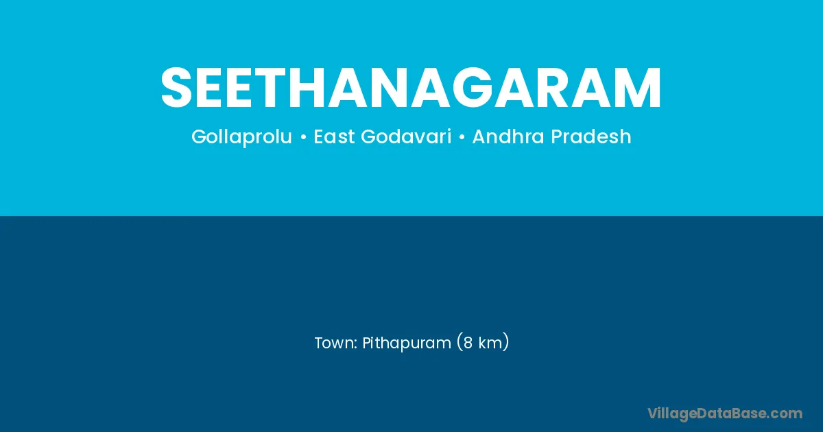 Eluru (68 km) is the nearest town to Seethanagaram village for major economic activities and is located approximately 68 km away.