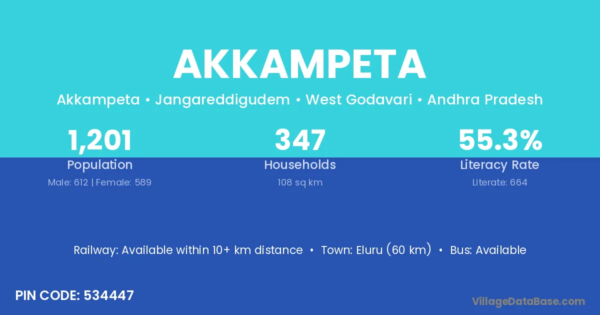 Akkampeta village has a total population of 1,201 people, of which 612 are males and 589 are females.