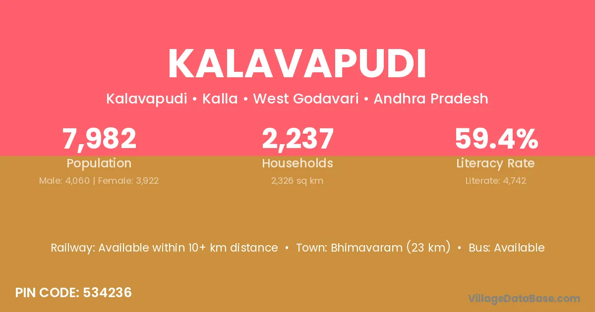 According to Census 2011 information, the village code of Kalavapudi village is 534236.