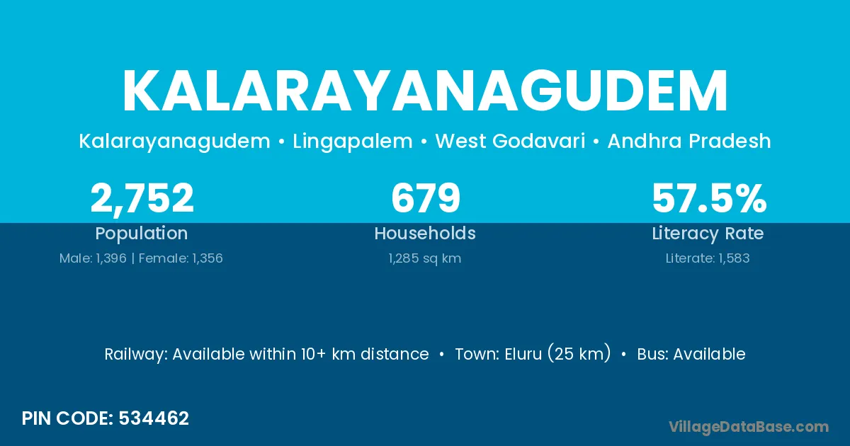 According to Census 2011 information, the village code of Kalarayanagudem village is 534462.