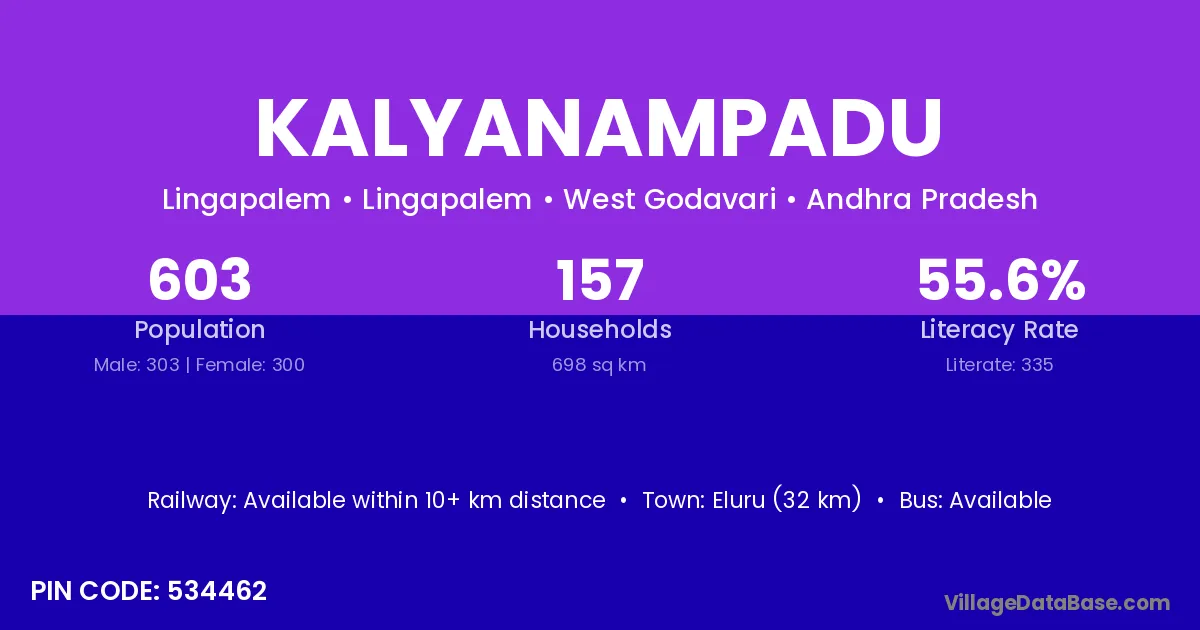 Kalyanampadu village has a total population of 603 people, of which 303 are males and 300 are females.