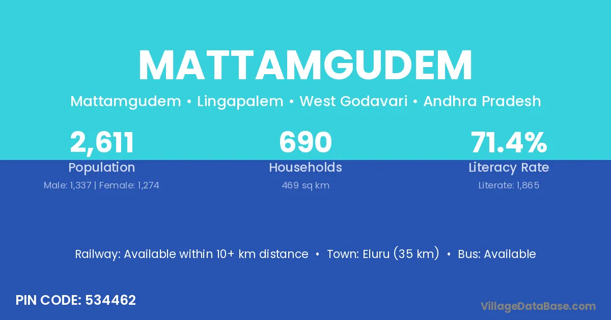 According to Census 2011 information, the village code of Mattamgudem village is 534462.