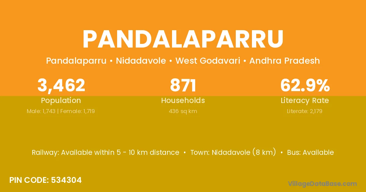 Nidadavole (8 km) is the nearest town to Pandalaparru village for major economic activities and is located approximately 8 km away.