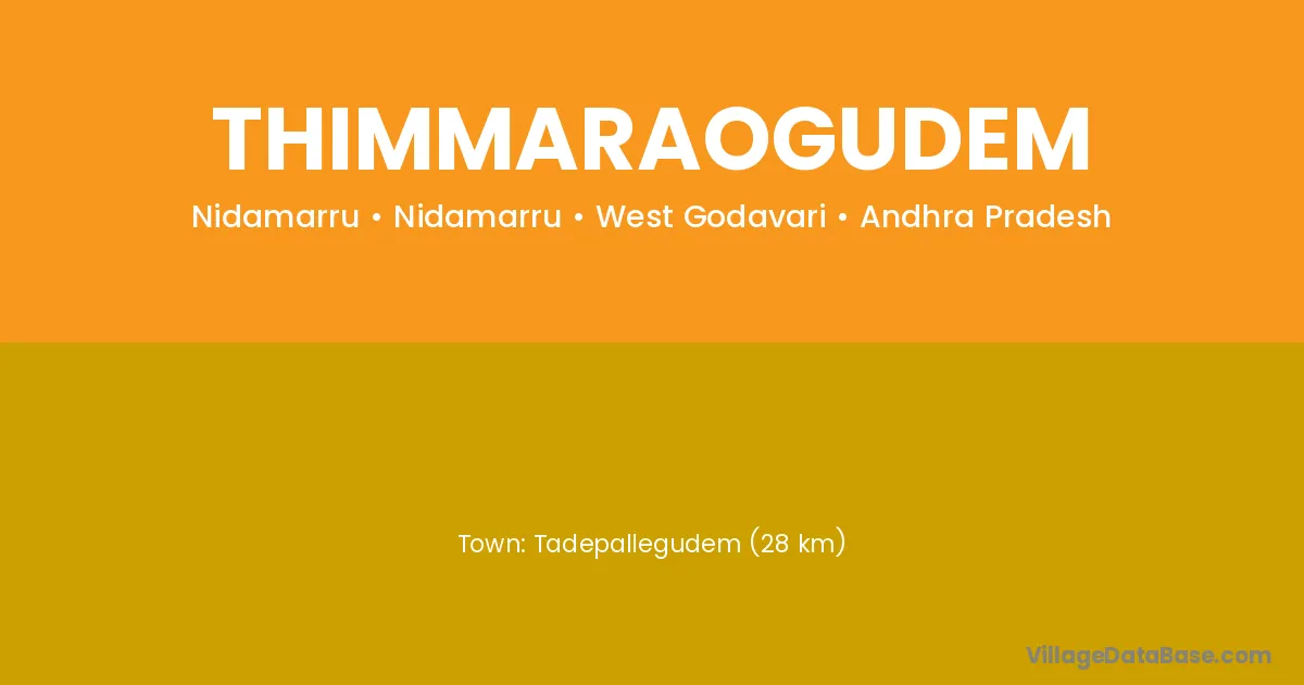 Tadepallegudem (28 km) is the nearest town to Thimmaraogudem village for major economic activities and is located approximately 28 km away.