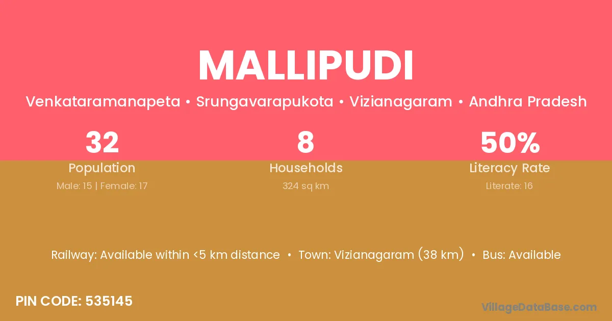 Mallipudi village has a total population of 3,045 people, of which 1,520 are males and 1,525 are females.