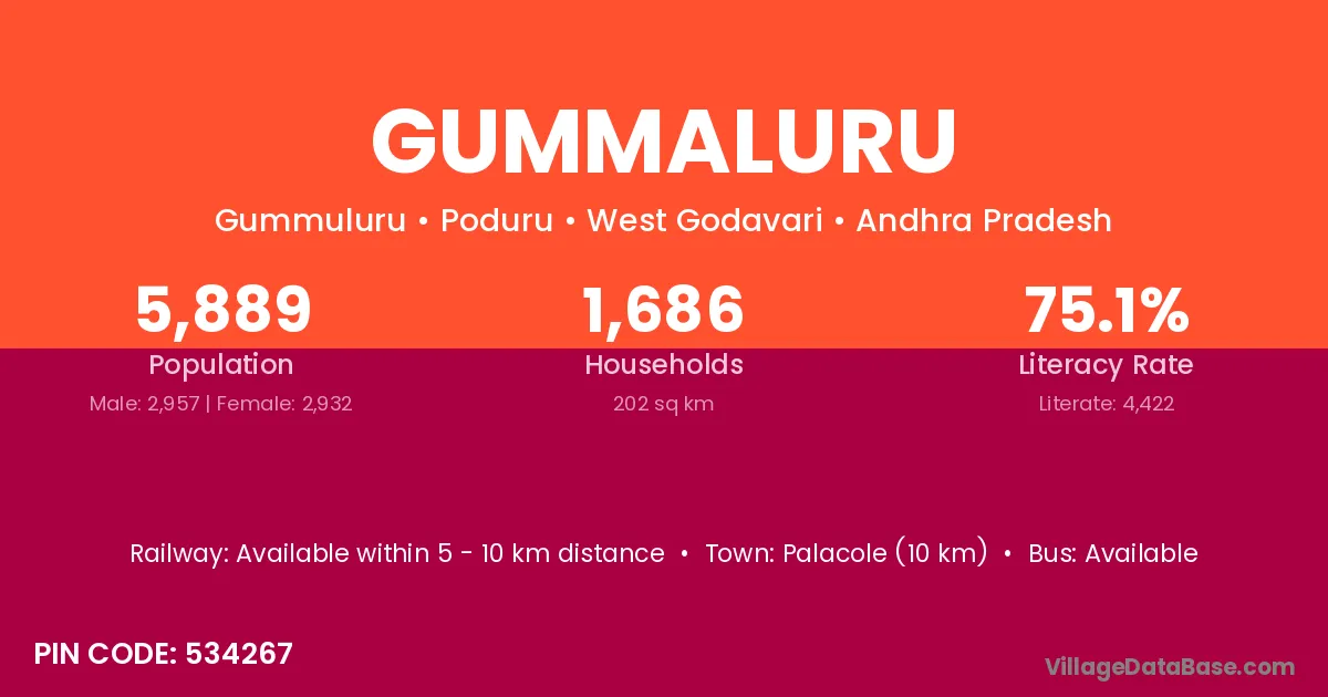 Palacole (10 km) is the nearest town to Gummaluru village for major economic activities and is located approximately 10 km away.