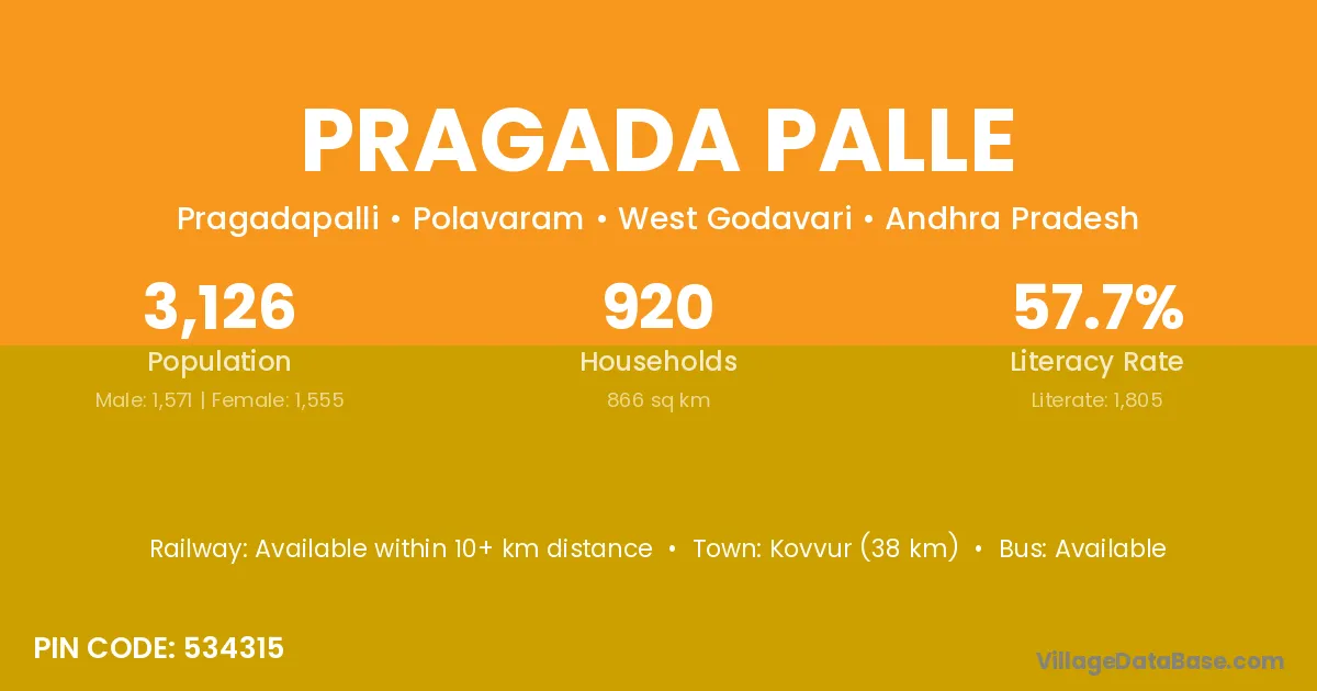 Kovvur (38 km) is the nearest town to Pragada Palle village for major economic activities and is located approximately 38 km away.