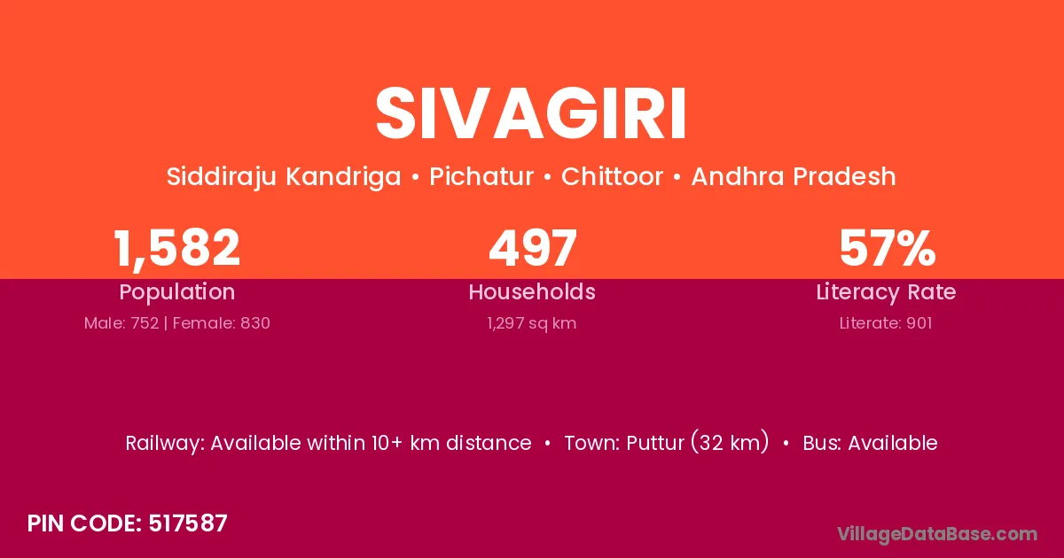 Kovvur (20 km) is the nearest town to Sivagiri village for major economic activities and is located approximately 20 km away.