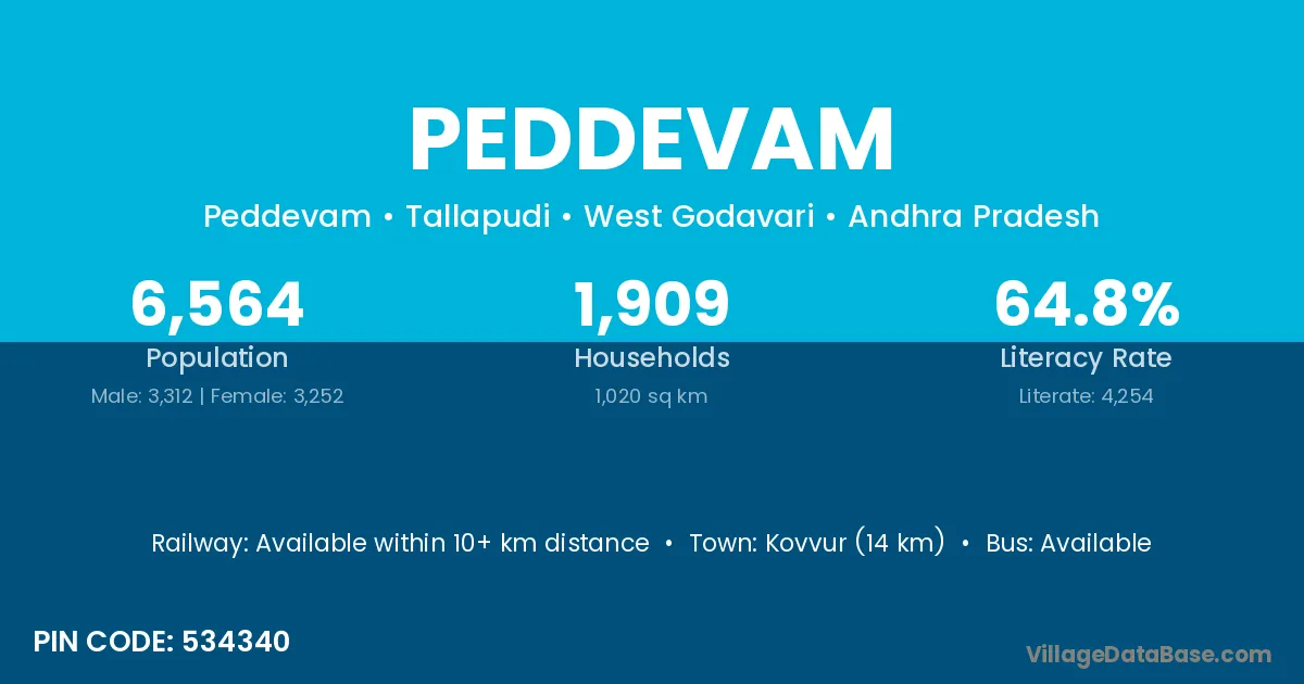 Kovvur (14 km) is the nearest town to Peddevam village for major economic activities and is located approximately 14 km away.