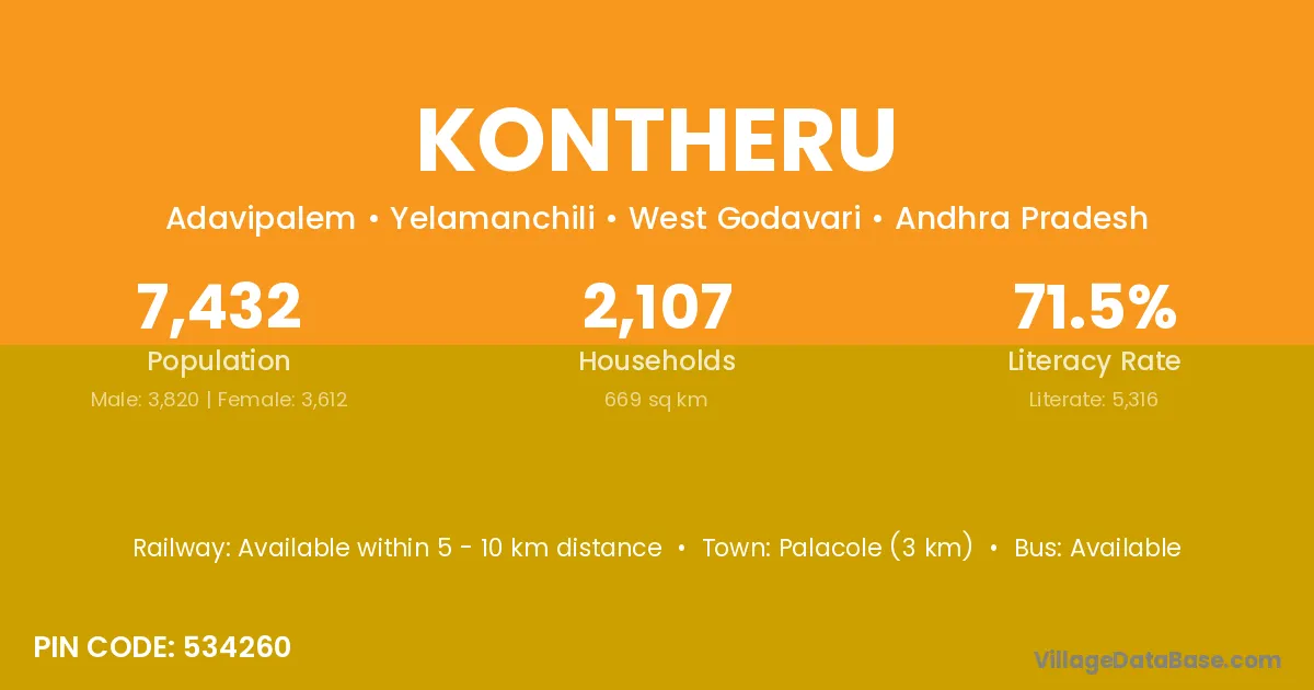 According to Census 2011 information, the village code of Kontheru village is 534260.