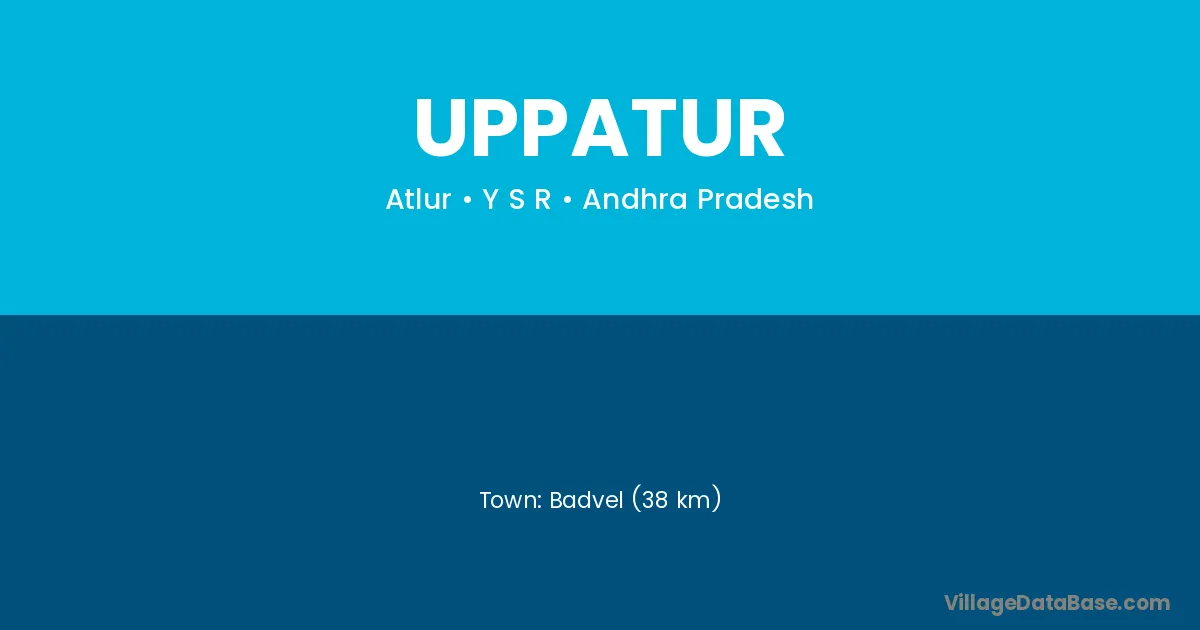 Badvel (38 km) is the nearest town to Uppatur village for major economic activities and is located approximately 38 km away.