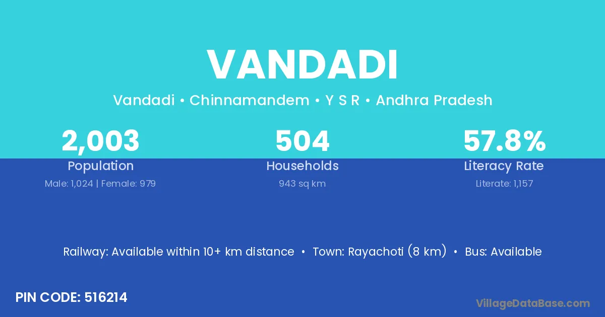 According to Census 2011 information, the village code of Vandadi village is 516214.