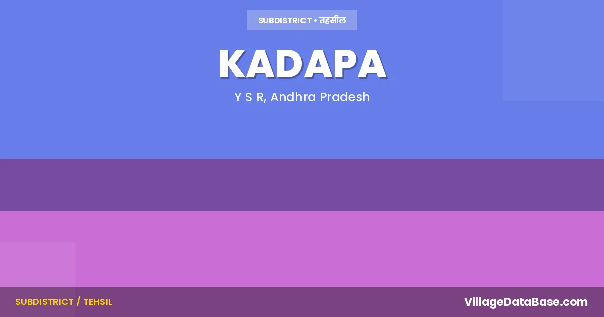 Kadapa is a town and Mandal in the Y S R district of the Andhra Pradesh. In India, a Mandal is a subdivision of a district responsible for the administration and revenue collection of a specific area within the district. Mandals play a crucial role in the local governance structure, contributing significantly to the development and administration of their communities.