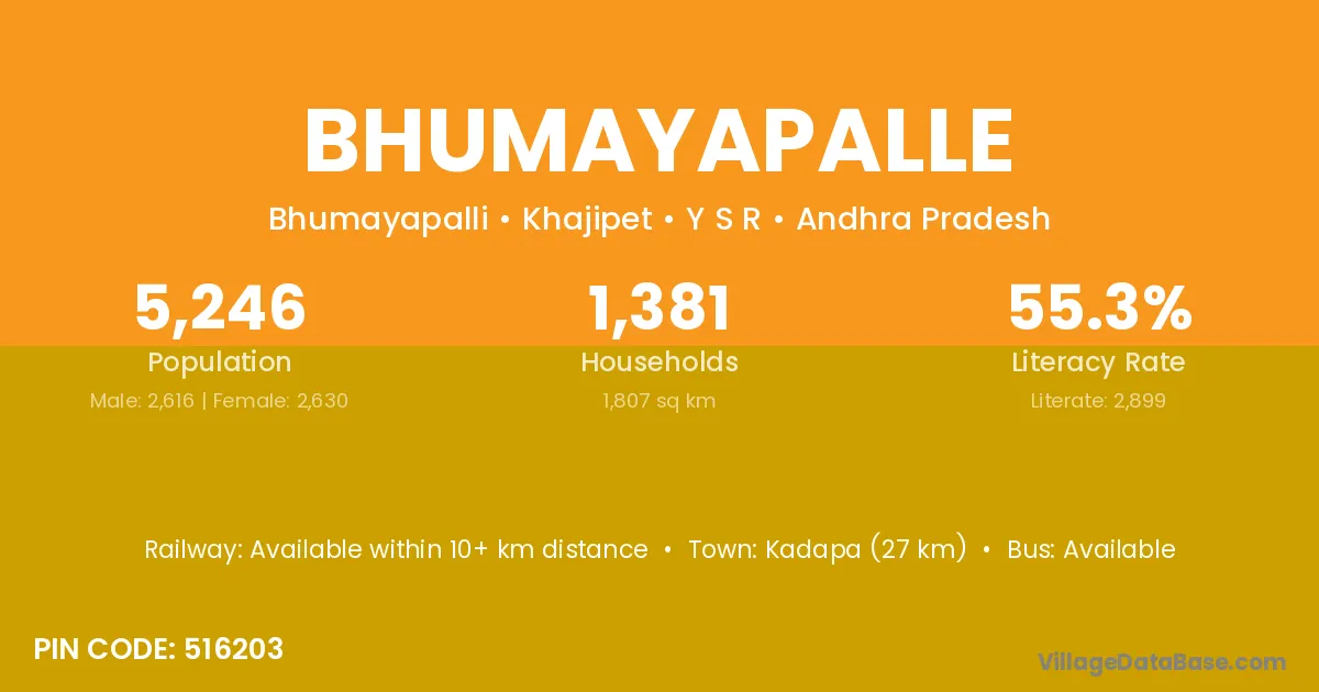According to Census 2011 information, the village code of Bhumayapalle village is 516203.