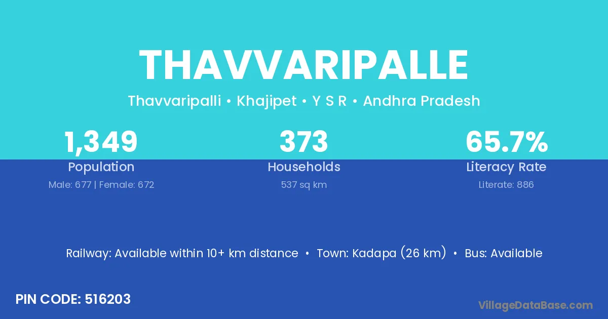 According to Census 2011 information, the village code of Thavvaripalle village is 516203.