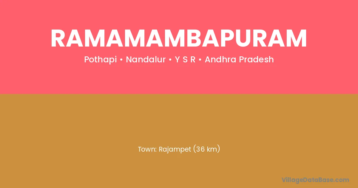 Rajampet (36 km) is the nearest town to Ramamambapuram village for major economic activities and is located approximately 36 km away.