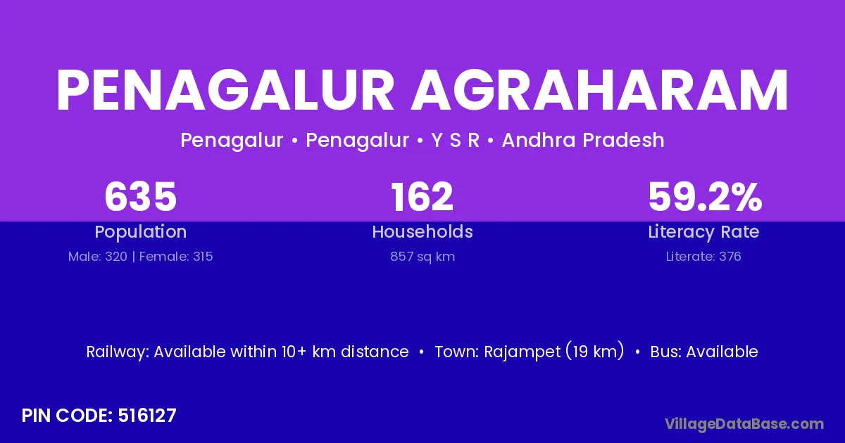 Rajampet (19 km) is the nearest town to Penagalur Agraharam village for major economic activities and is located approximately 19 km away.