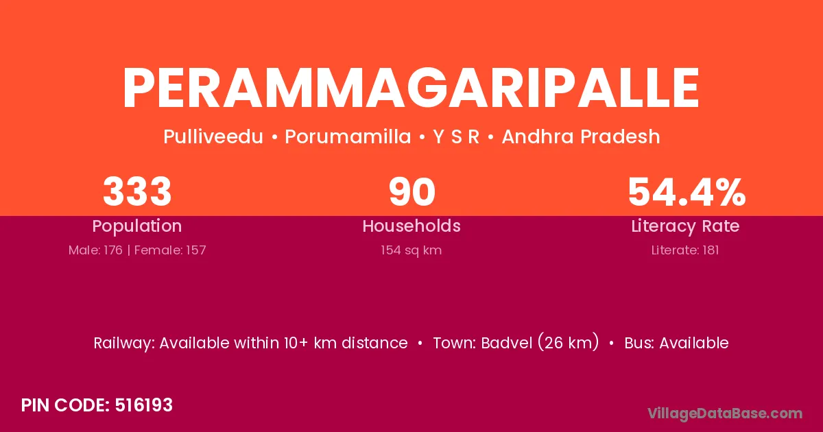 Badvel (26 km) is the nearest town to Perammagaripalle village for major economic activities and is located approximately 26 km away.