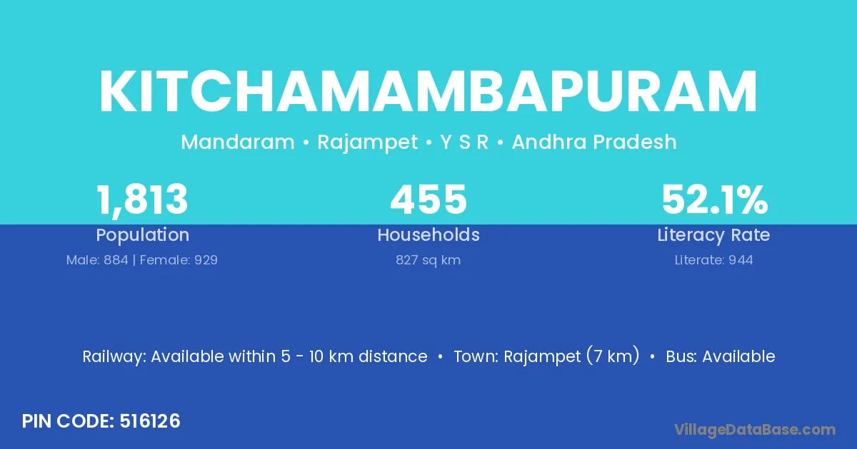 Rajampet (7 km) is the nearest town to Kitchamambapuram village for major economic activities and is located approximately 7 km away.