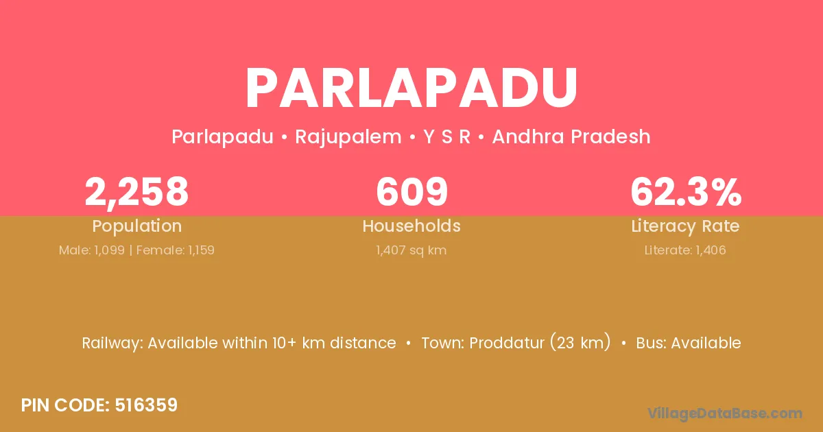 Proddatur (23 km) is the nearest town to Parlapadu village for major economic activities and is located approximately 23 km away.