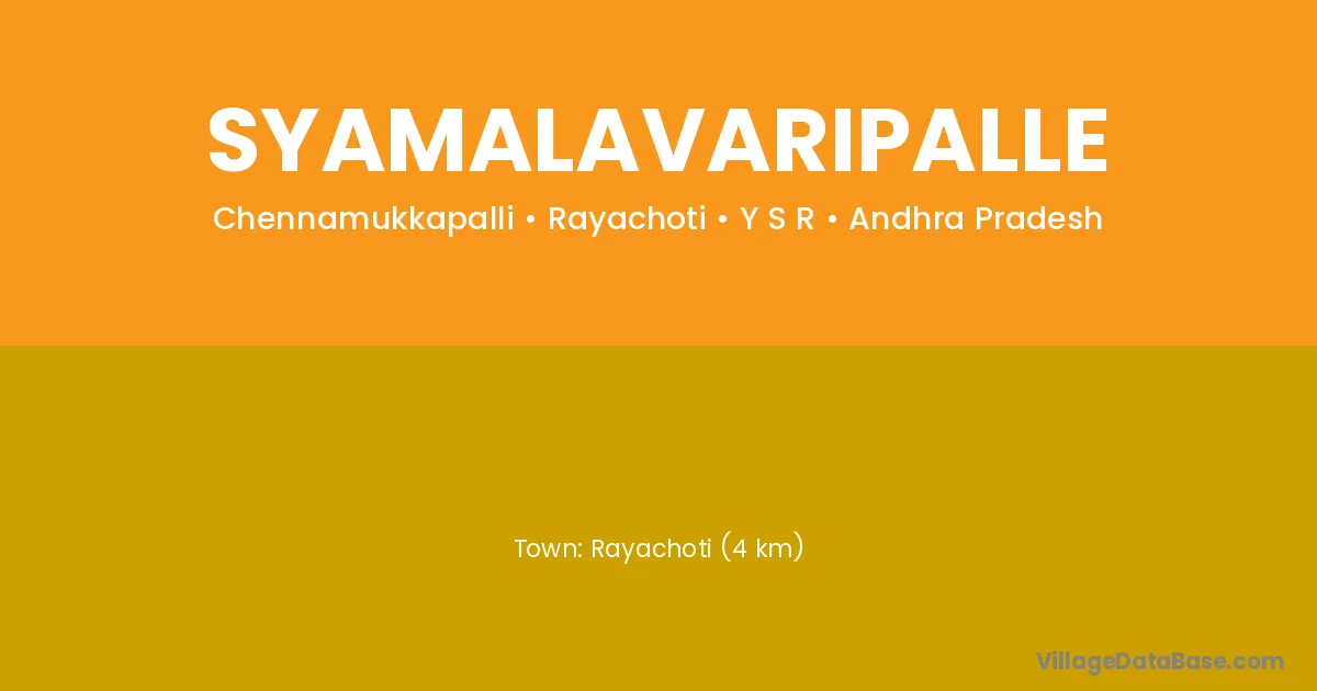 Rayachoti (4 km) is the nearest town to Syamalavaripalle village for major economic activities and is located approximately 4 km away.
