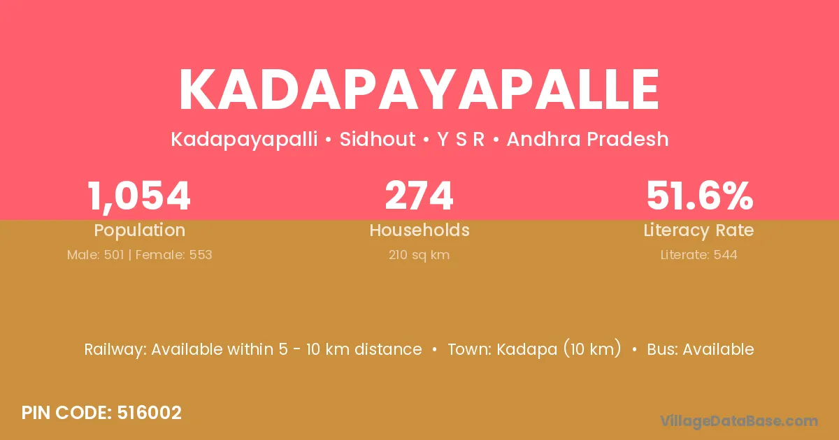 Kadapa (10 km) is the nearest town to Kadapayapalle village for major economic activities and is located approximately 10 km away.