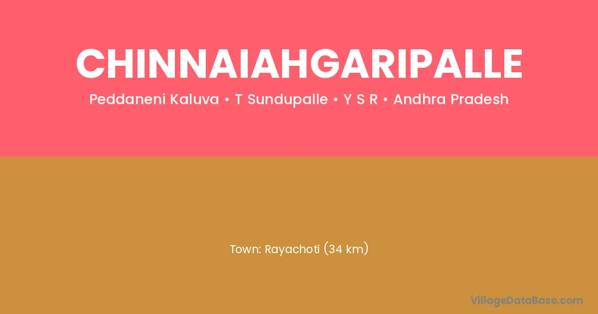 Rayachoti (34 km) is the nearest town to Chinnaiahgaripalle village for major economic activities and is located approximately 34 km away.