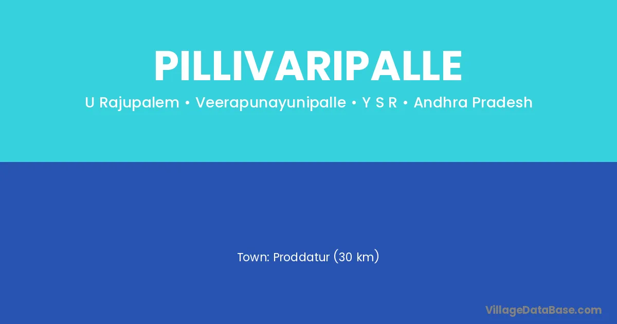 Proddatur (30 km) is the nearest town to Pillivaripalle village for major economic activities and is located approximately 30 km away.