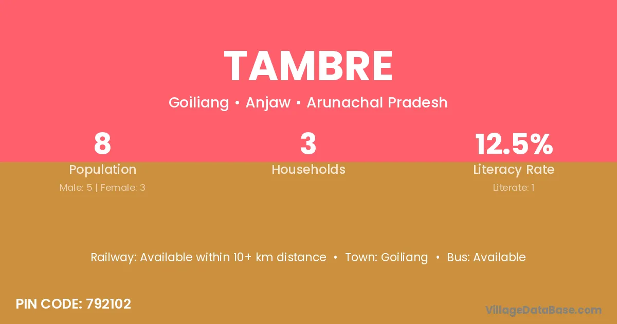 Tambre village has a total population of 8 people, of which 5 are males and 3 are females.