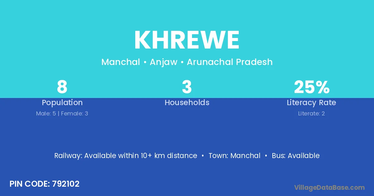 Khrewe village has a total population of 8 people, of which 5 are males and 3 are females.