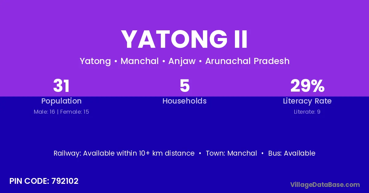 Yatong Ii village has a total population of 31 people, of which 16 are males and 15 are females.