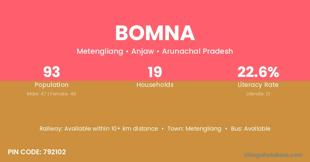 Bomna village is located in the Metengliang Circle of the Anjaw district in Arunachal Pradesh .