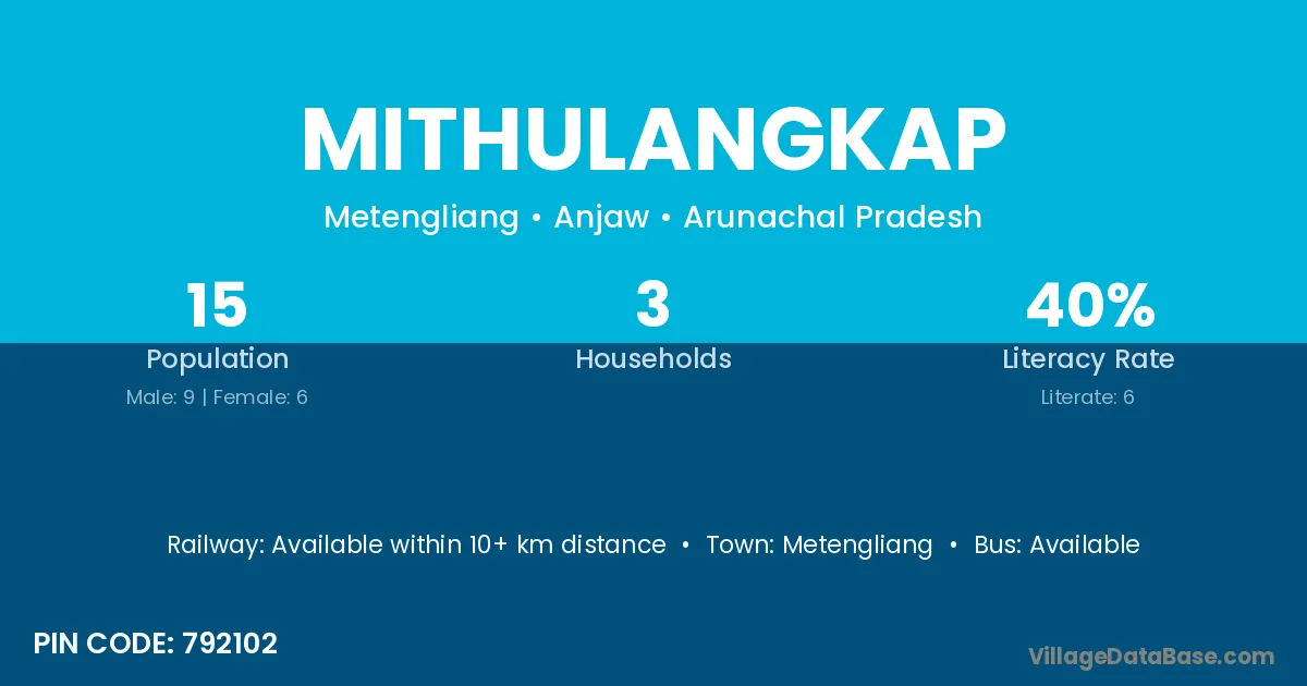 Mithulangkap village has a total population of 15 people, of which 9 are males and 6 are females.
