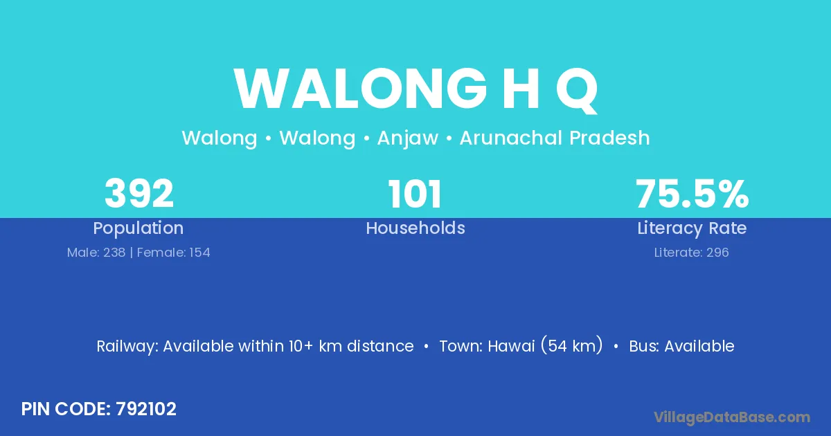 Walong H Q village has a total population of 392 people, of which 238 are males and 154 are females.