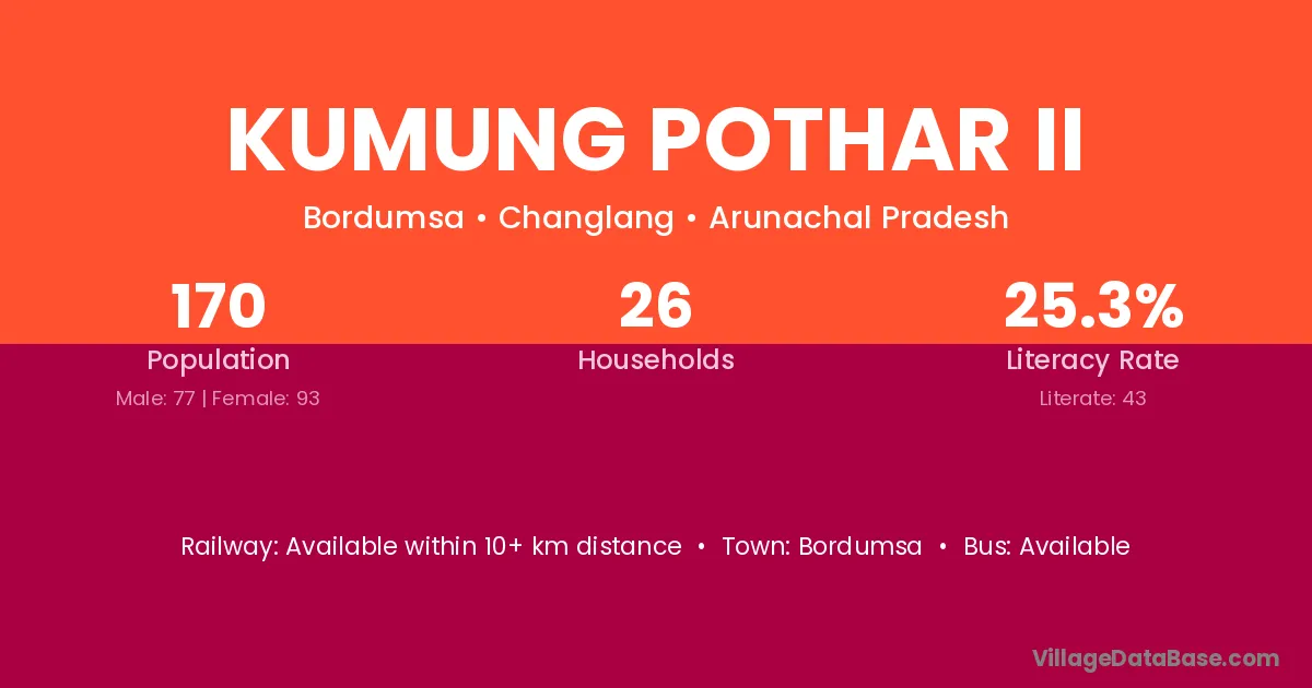 Kumung Pothar Ii village has a total population of 170 people, of which 77 are males and 93 are females.