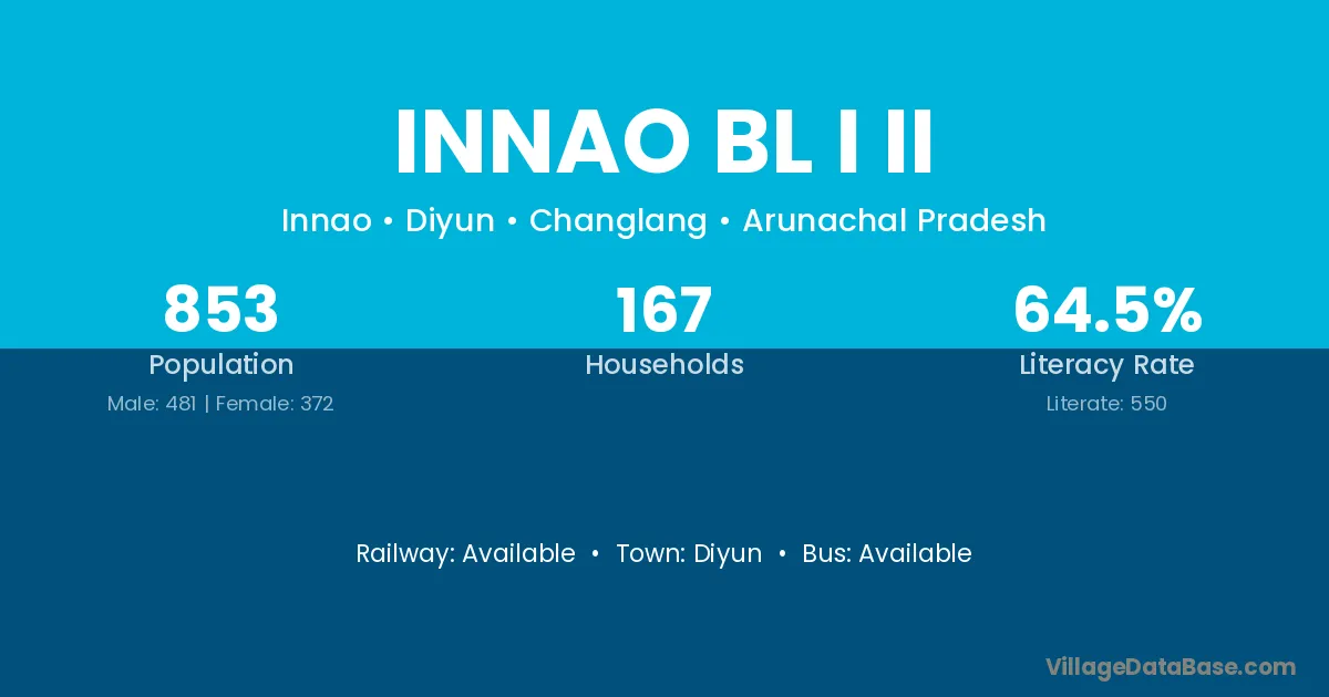 Innao Bl I Ii village has a total population of 853 people, of which 481 are males and 372 are females.