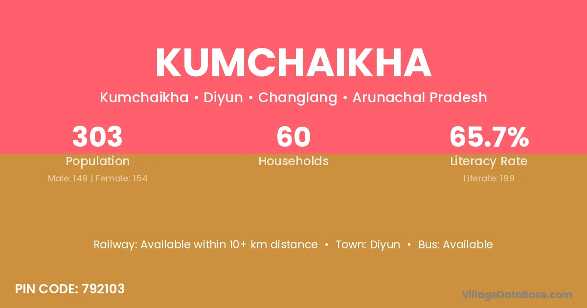 Kumchaikha village has a total population of 303 people, of which 149 are males and 154 are females.
