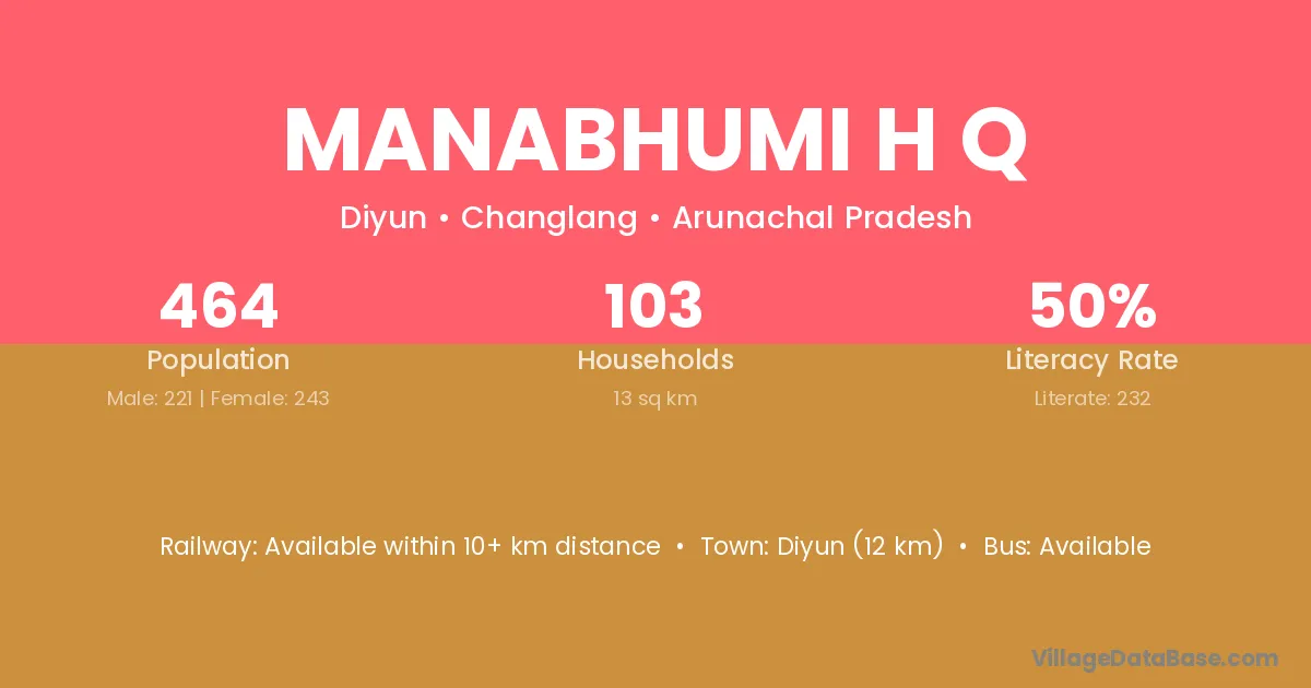 Manabhumi H Q village has a total population of 464 people, of which 221 are males and 243 are females.