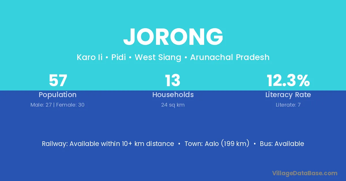 Miao (5 km) is the nearest town to Jorong village for major economic activities and is located approximately 5 km away.