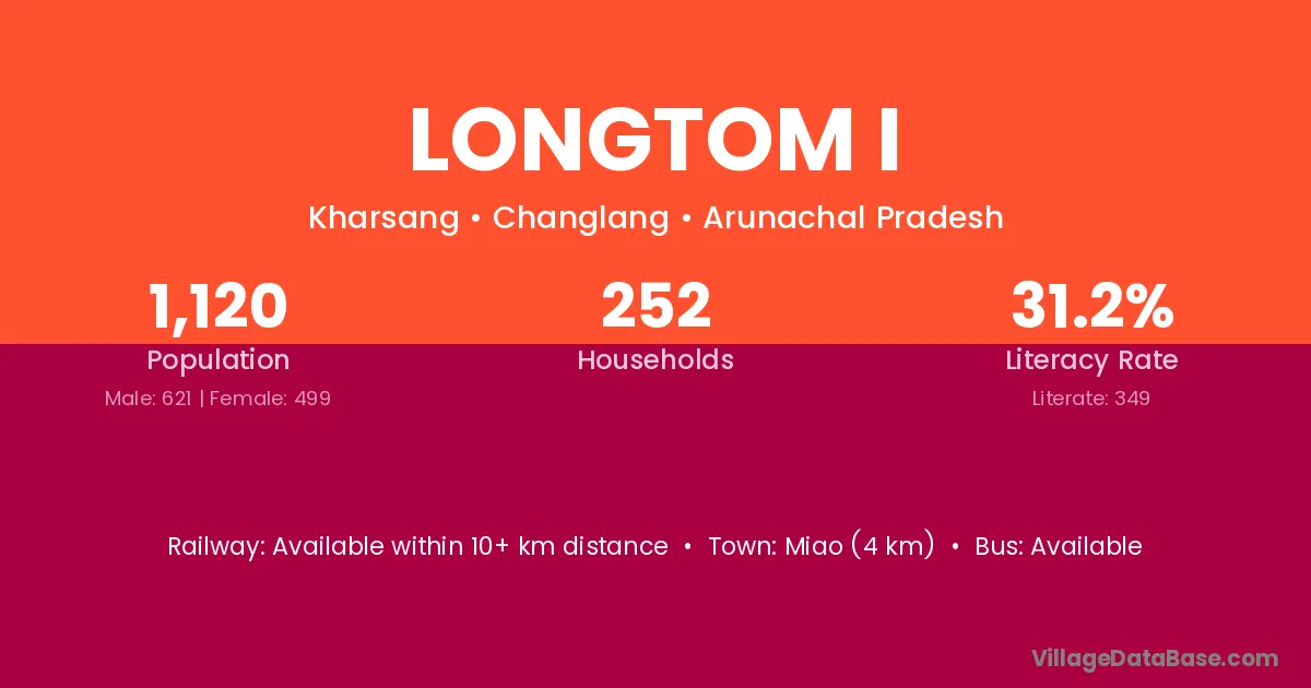 Miao (4 km) is the nearest town to Longtom I village for major economic activities and is located approximately 4 km away.