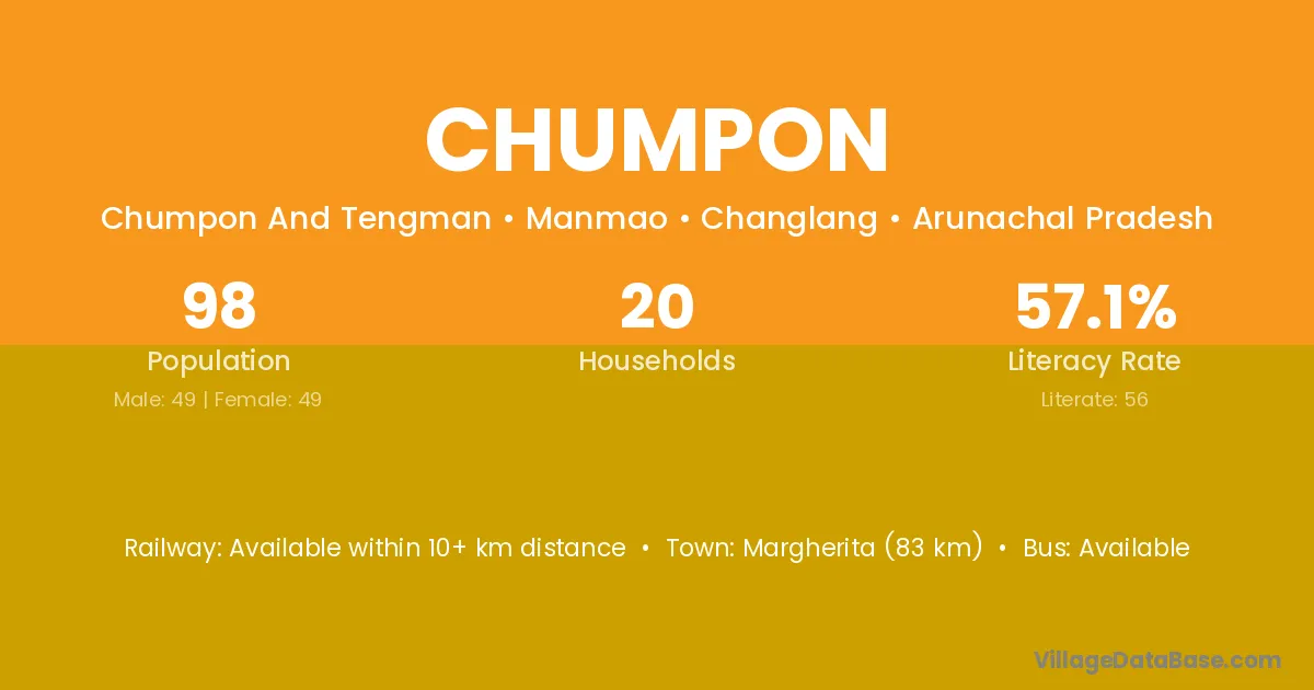 Chumpon village has a total population of 98 people, of which 49 are males and 49 are females.