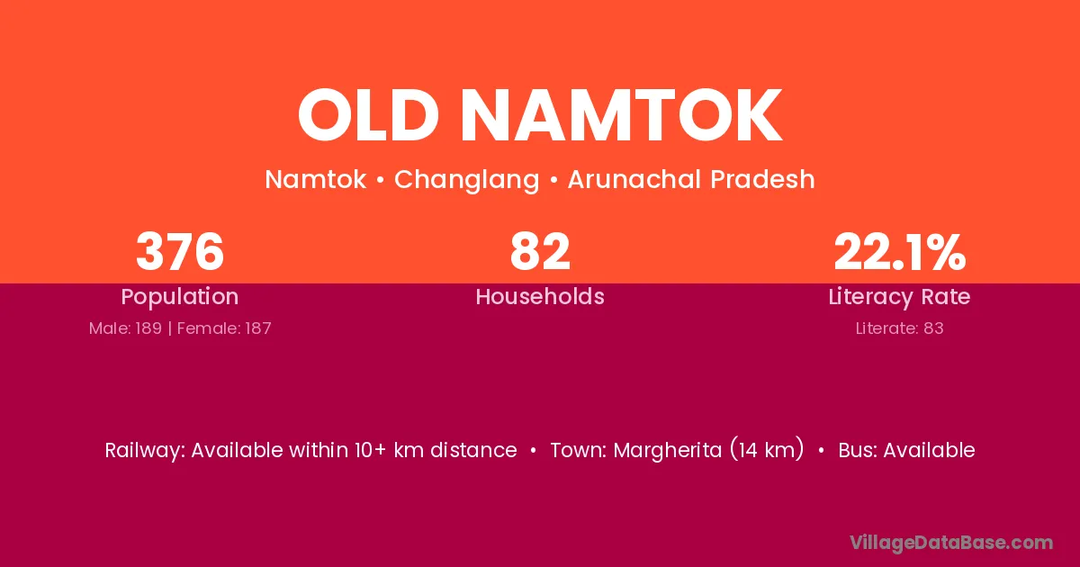 Margherita (14 km) is the nearest town to Old Namtok village for major economic activities and is located approximately 14 km away.